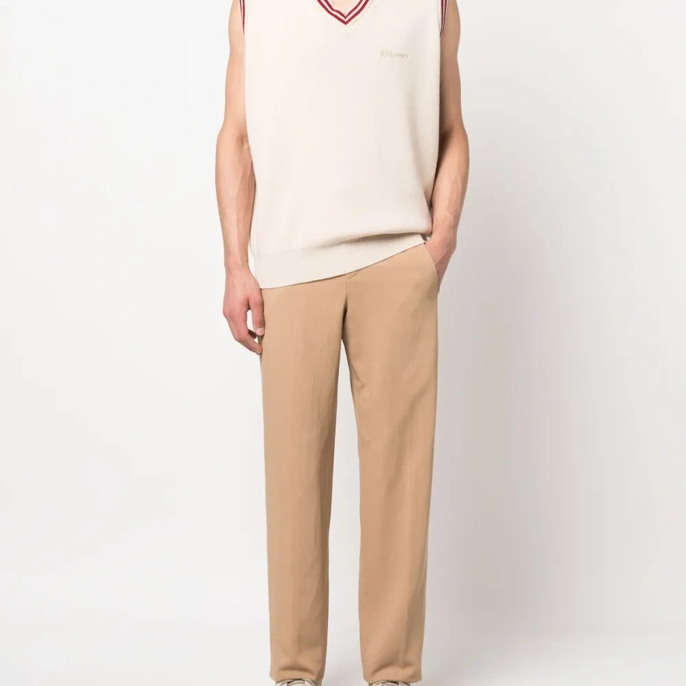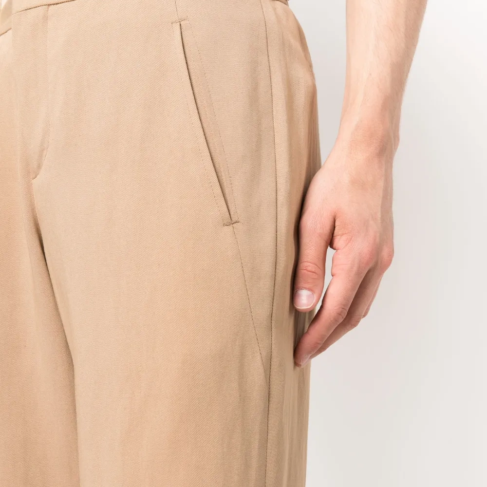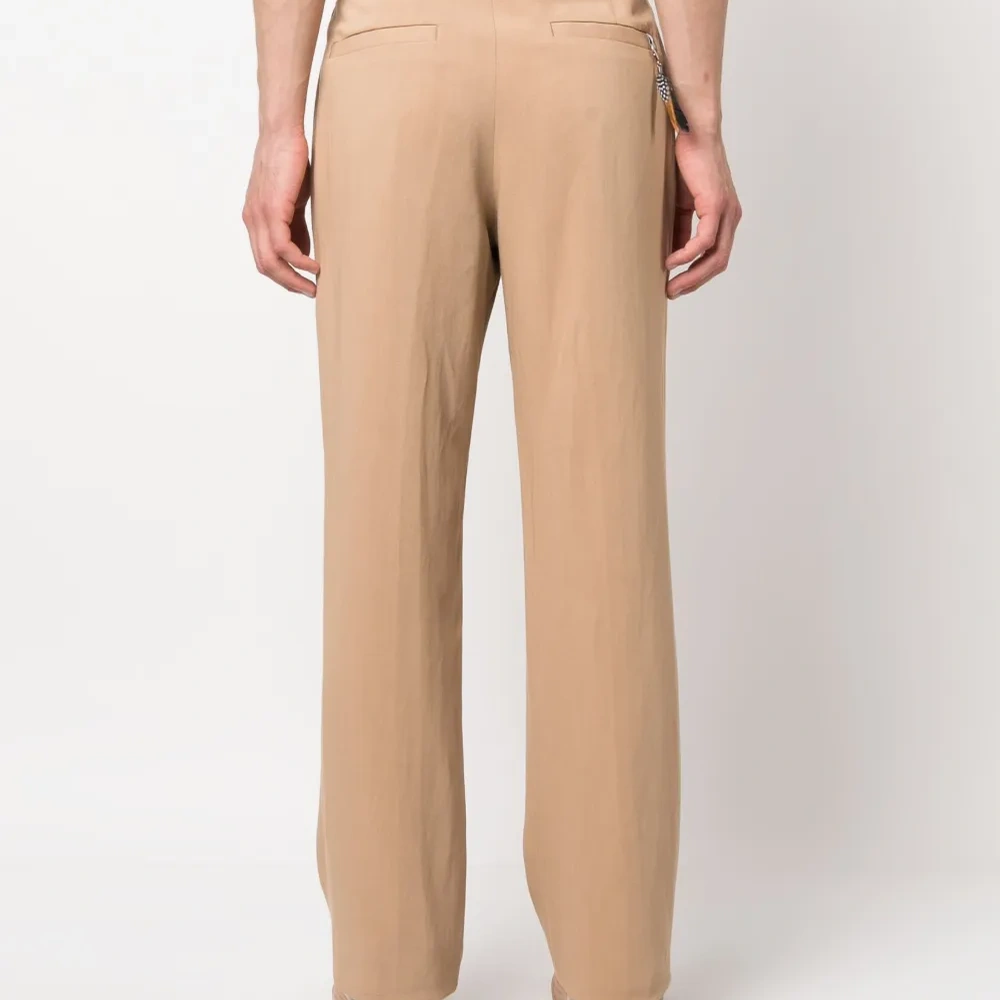 Боковые застежки с пряжками, потайная застежка спереди, два вшитых кармана по бокам и два кармана с листочкой сзади.