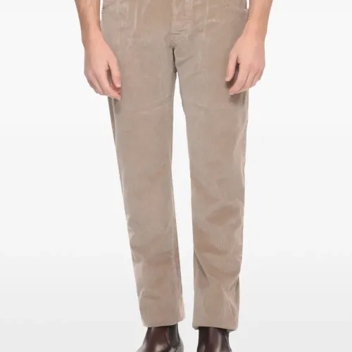 коричневая вельветовая фактура, пять карманов, шлевки для ремня, стандартный крой