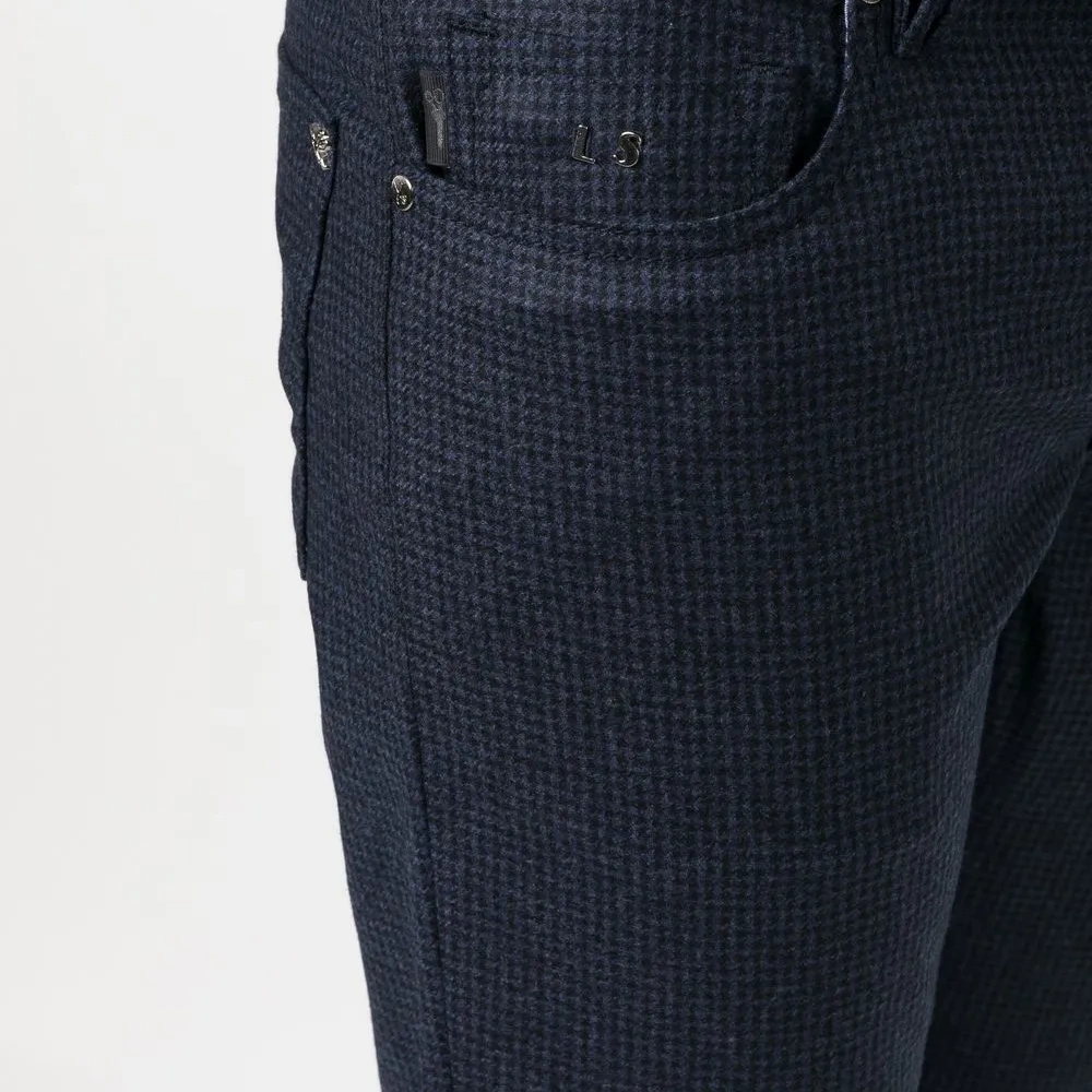 Темно-синий, необработанная шерсть, клетчатый узор, нашивка с логотипом сзади, застежка на молнии и пуговице спереди, прорезные карманы по бокам, два накладных кармана сзади и прямой крой.