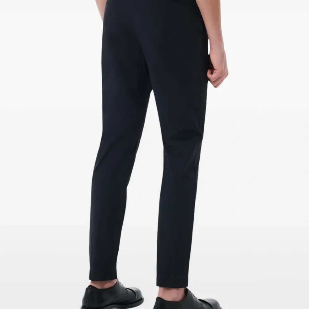темно-синий, нашивка с логотипом, шлевки для пояса, задний карман, контрастная прострочка, стандартный крой