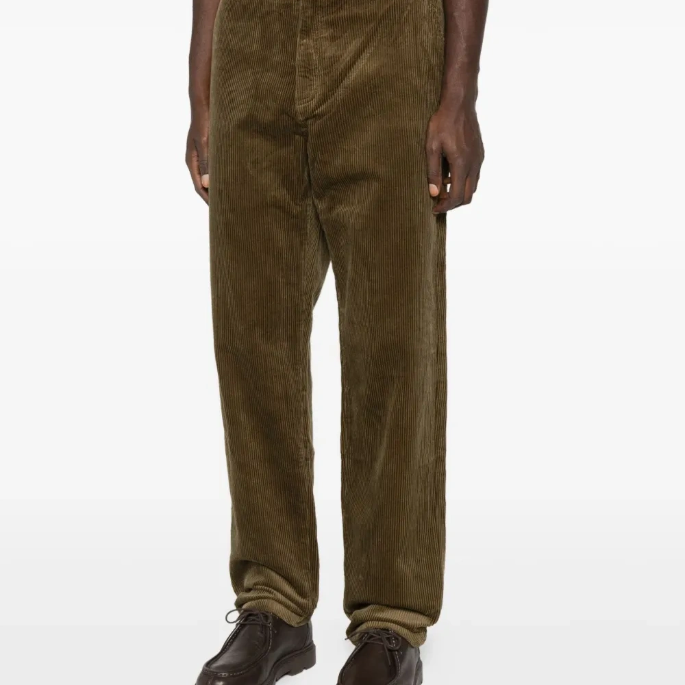 зелёные вельветовая фактура передние карманы застёжка на пуговицах прямые брючины средняя посадка