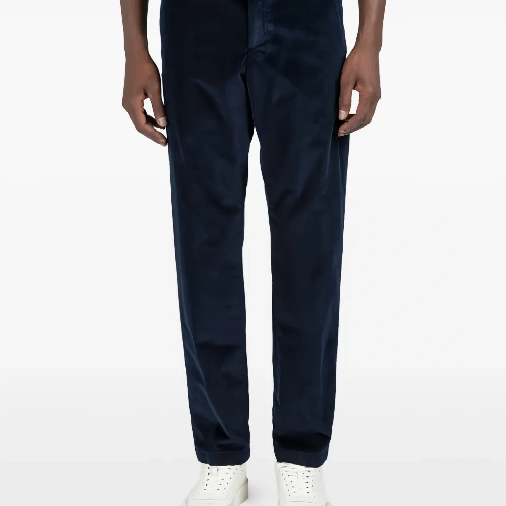 синий цвет, эластичный пояс, застежка на пуговицу, шлевки для ремня, задний прорезной карман