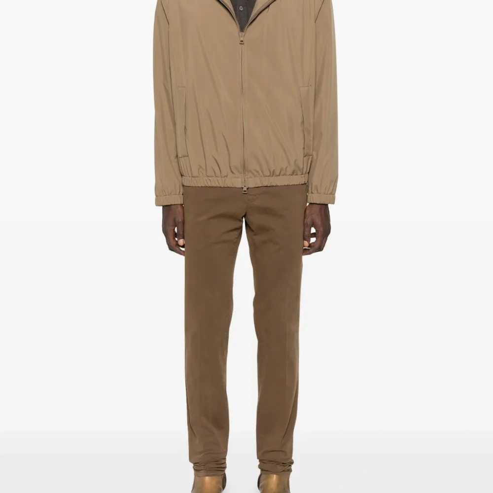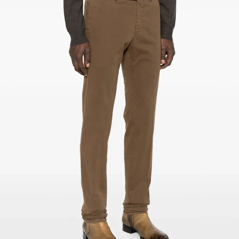 коричневый смесь хлопка застежка на пуговицы и молнию спереди шлевки для ремня боковые прорезные карманы