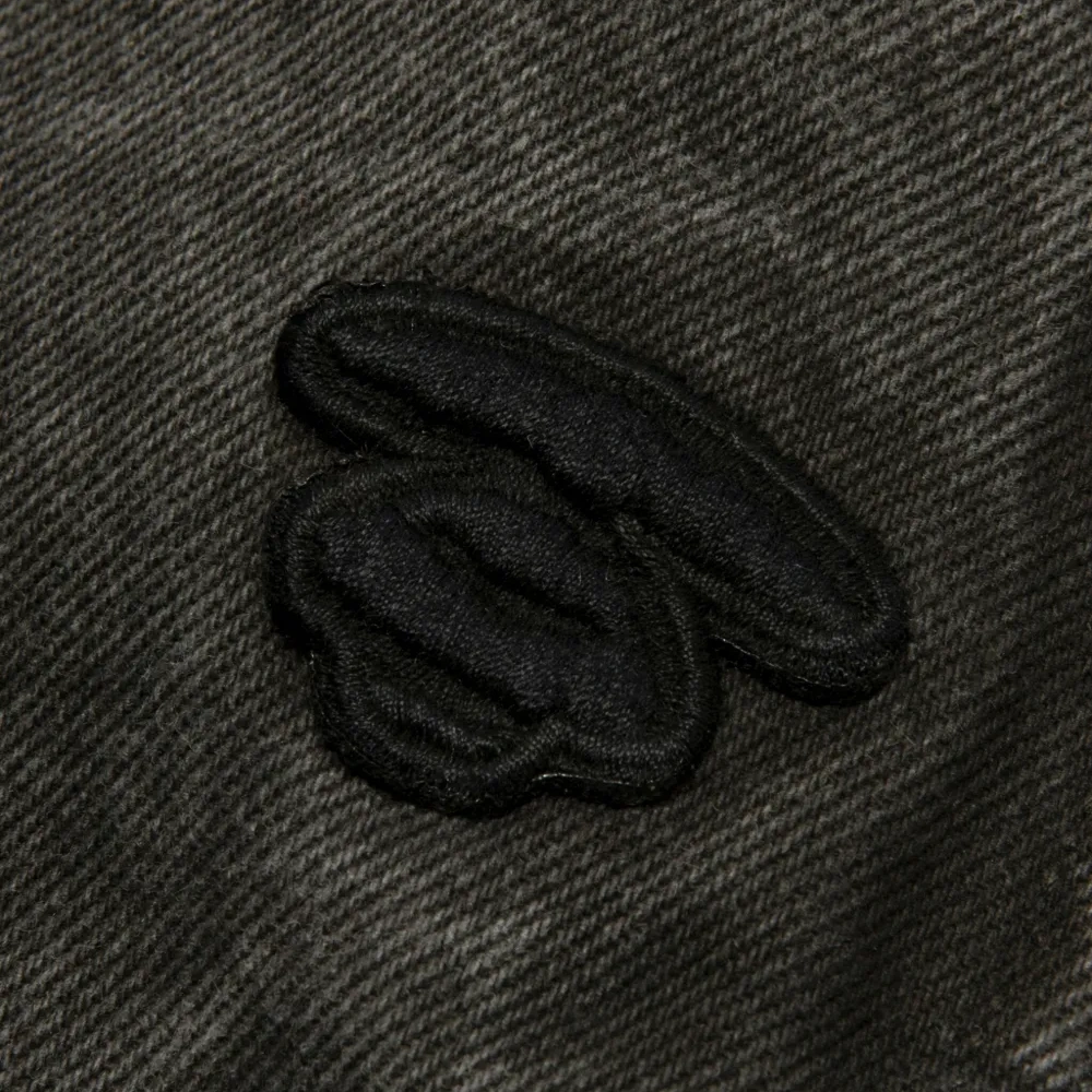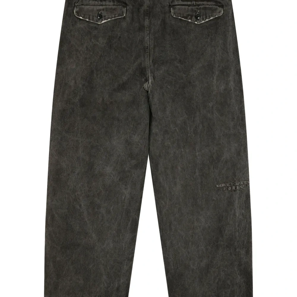 выстиранный черный хлопок, задние карманы с клапанами, шлевки для ремня