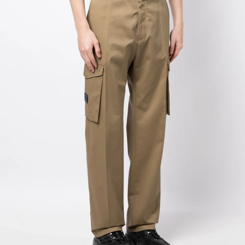 Расцветка Net Light Brown, хлопок, прямой крой, петли для ремня, застежка на молнии и пуговице спереди, два накладных кармана по бокам и два кармана с листочкой сзади.