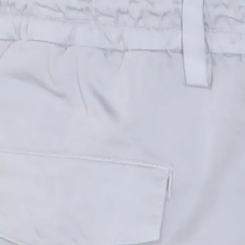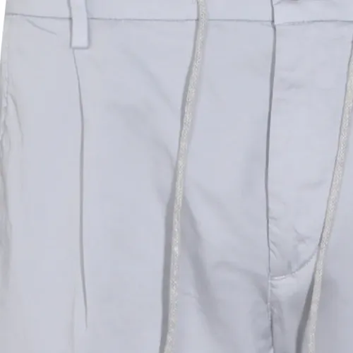 светло-бежевый, завязка на шнурок, шлевки для пояса, застежка на пуговицу, задние карманы с клапанами, тональная строчка