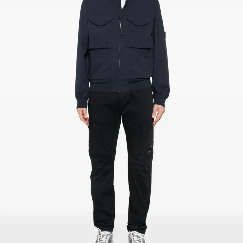 темно-серый цвет, нашивка с логотипом, боковые клапанные карманы, задний прорезной карман, шлевки для ремня, скрытая застежка-молния; C.P. Company рекомендует снимать все съемные аксессуары перед стиркой.