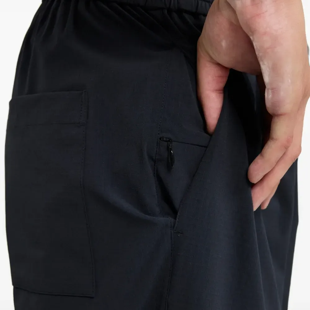 черные с завязками, карманом на молнии, задним карманом и эластичным поясом
