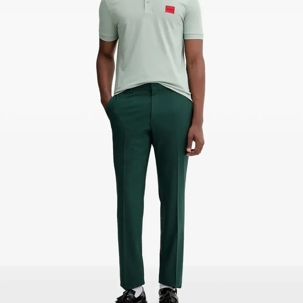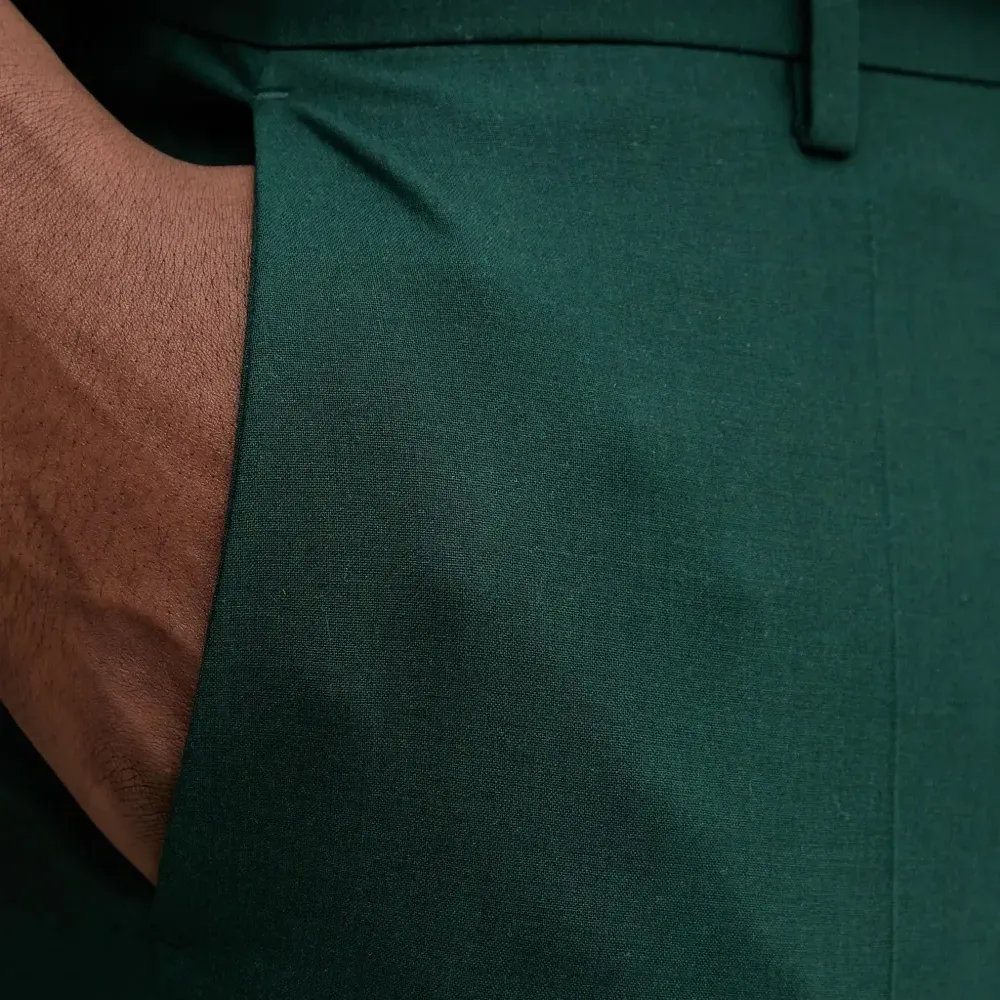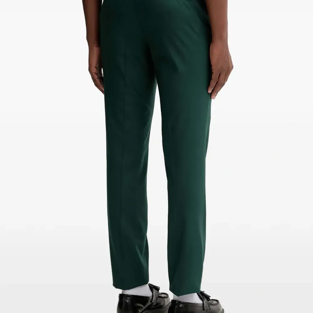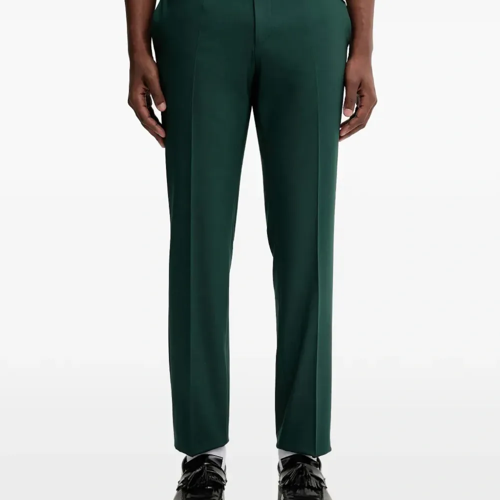 зеленые, боковые карманы, шлевки для пояса, застежка на молнии, прямые брючины