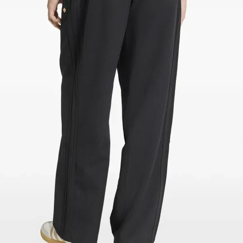 чёрные брюки с логотипом, полосками по бокам, эластичным поясом и прорезными карманами