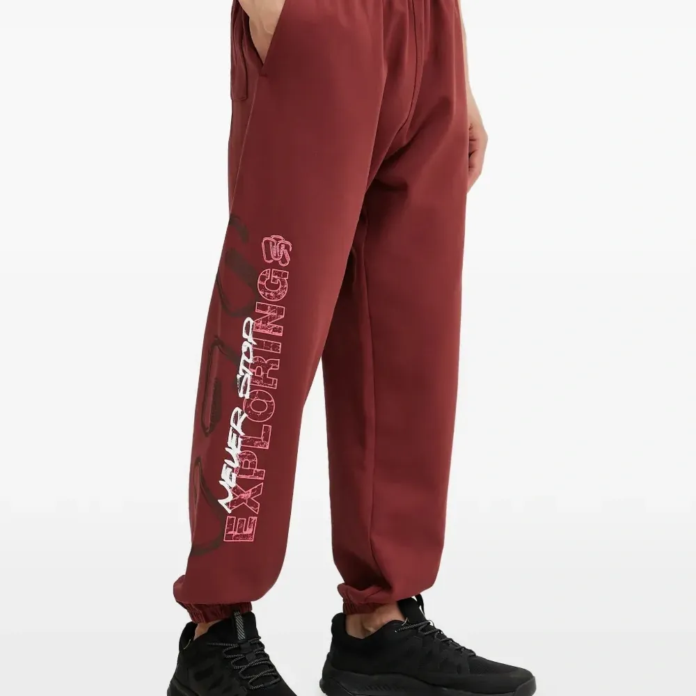 темно-красный, принт с логотипом, эластичный пояс, боковой прорезной карман, эластичные манжеты, задний накладной карман