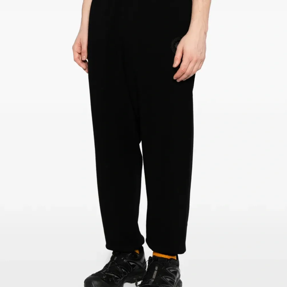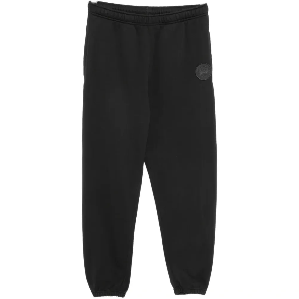 Чёрный эластичный пояс с внутренним шнурком, два боковых прорезных кармана, эластичные манжеты на щиколотках