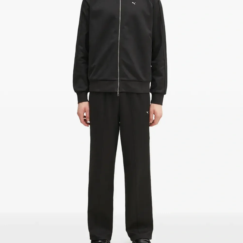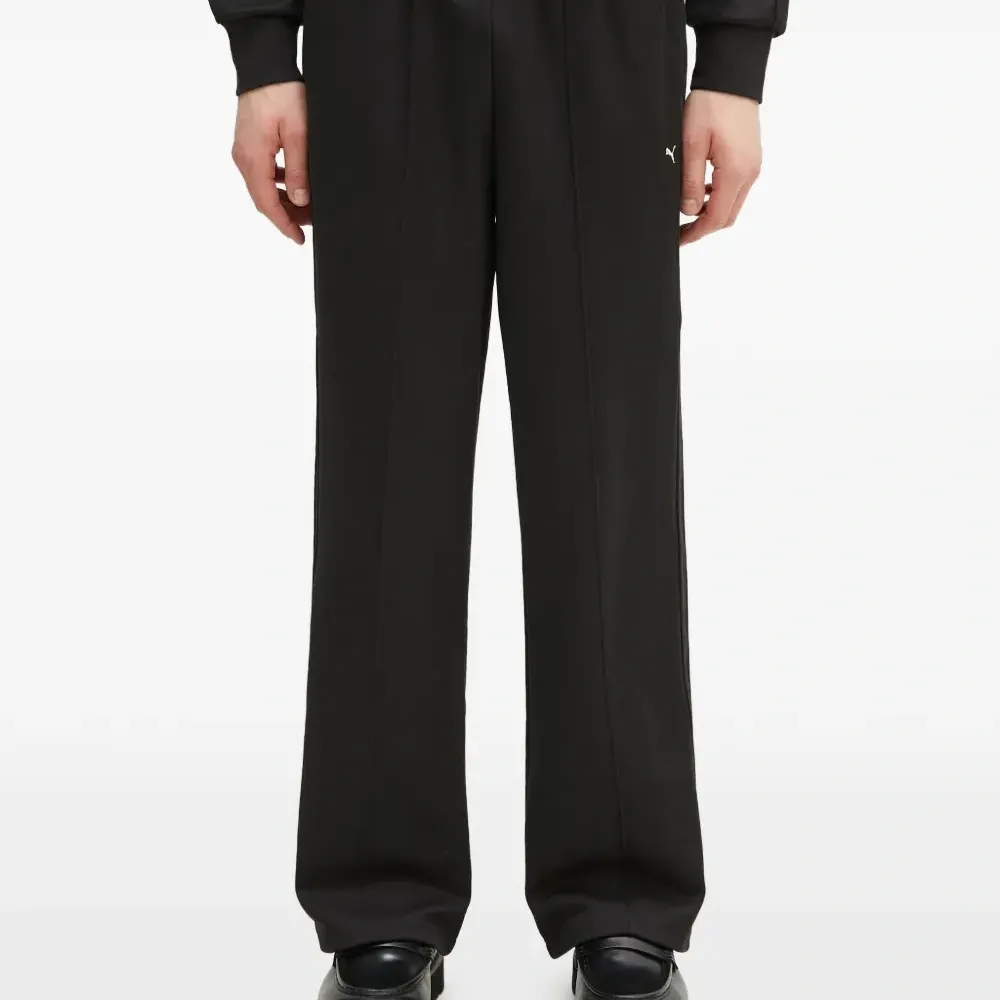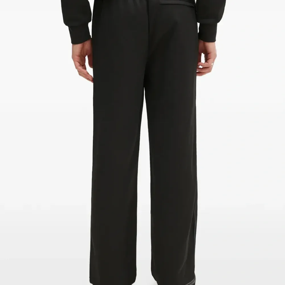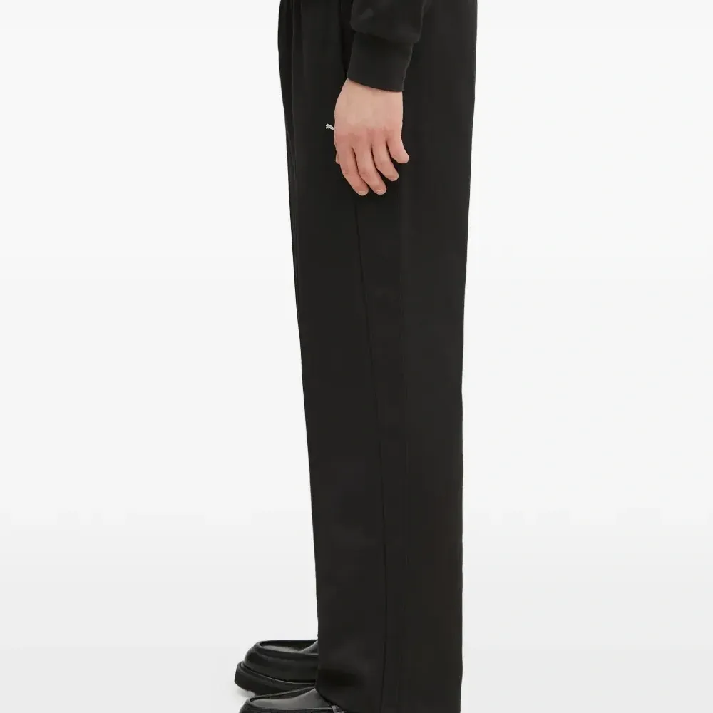 черные прямые брюки с эластичным поясом и задним прорезным карманом