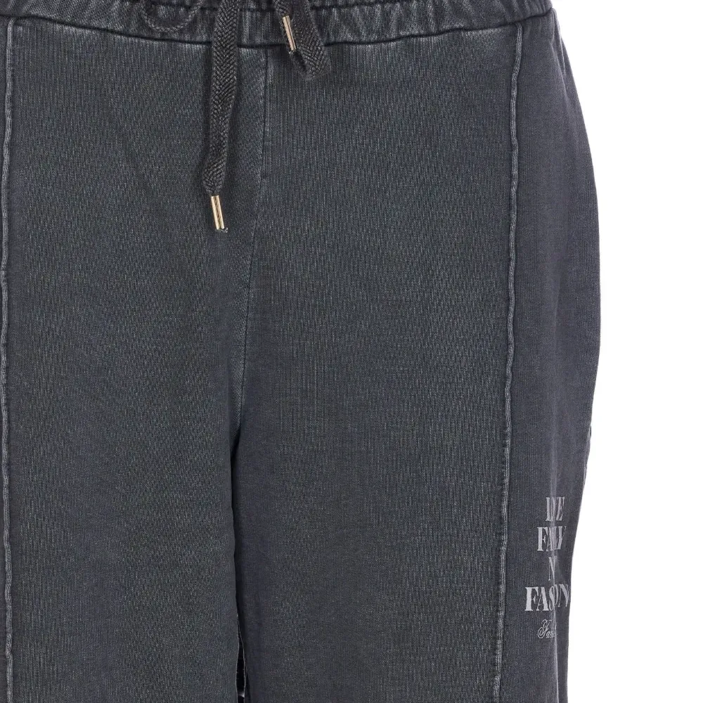 черные с боковыми швами, шнуровкой на талии, принтом спереди, боковыми карманами, из хлопка