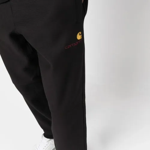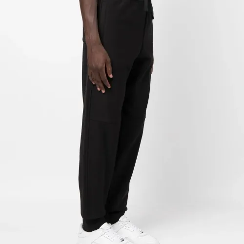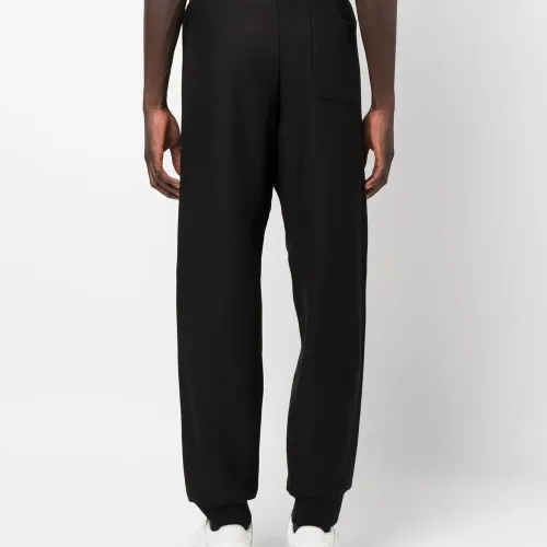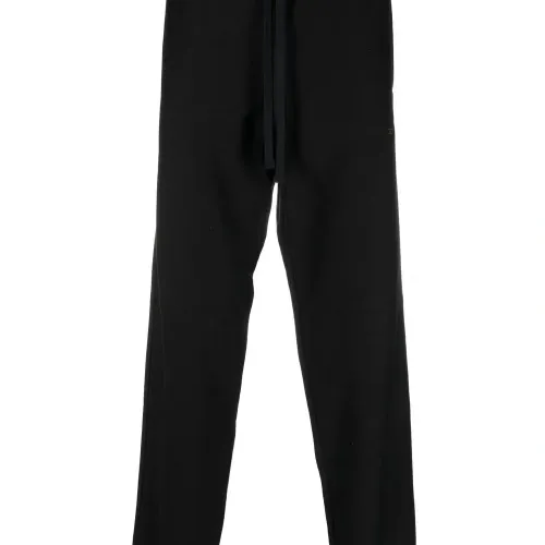Черный, смесовый хлопок, флисовый материал, кулиска, узкий крой, два прорезных кармана по бокам, накладной карман сзади и эластичные манжеты.