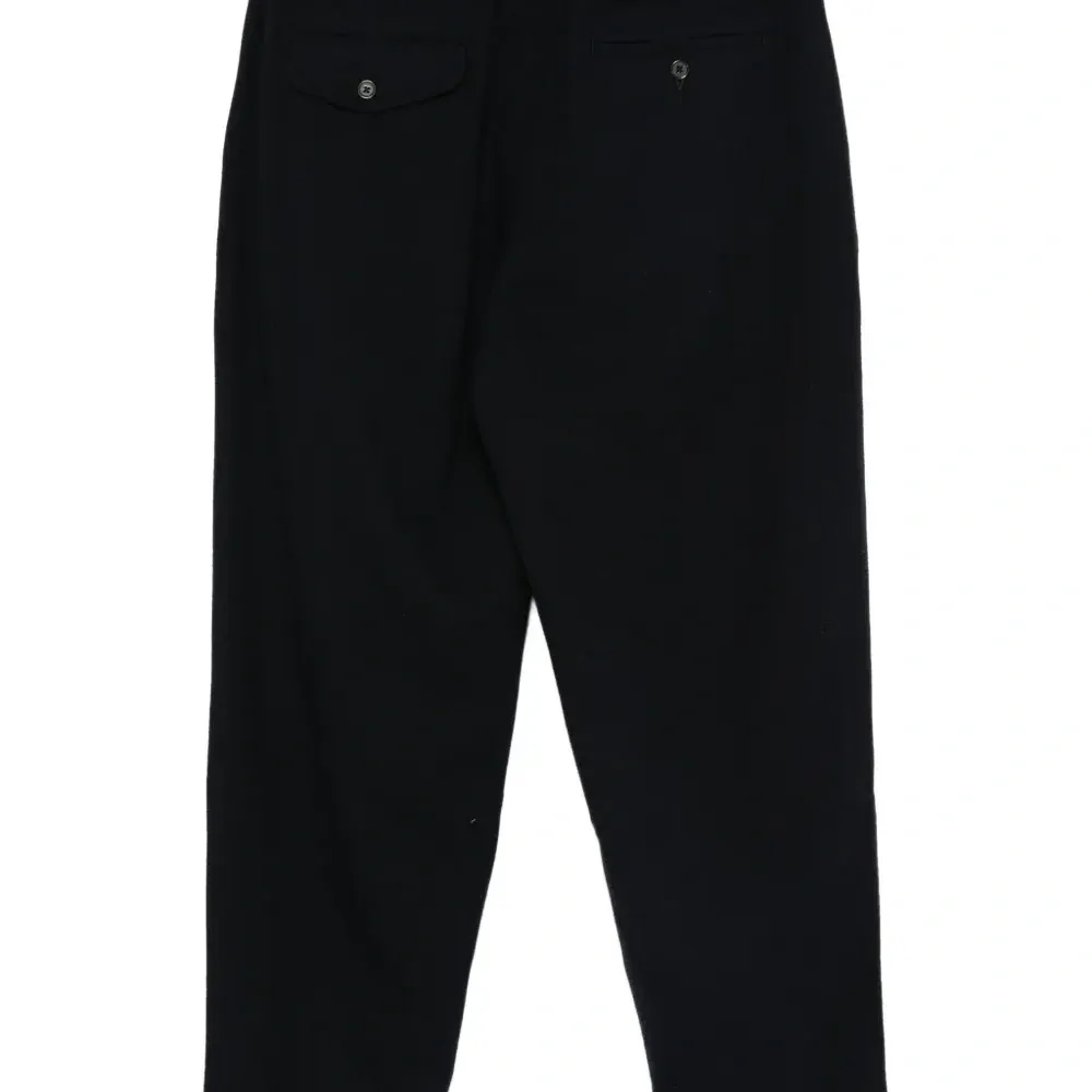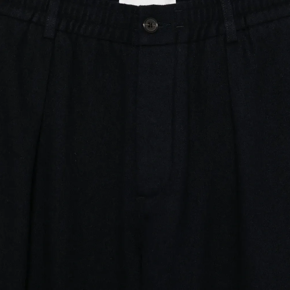 темно-синий передние складки застежка спереди на пуговицу и молнию шлевки для ремня прямые брючины
