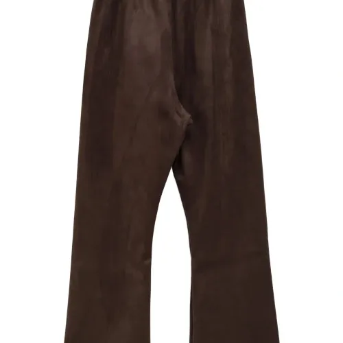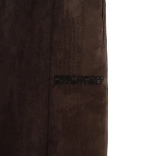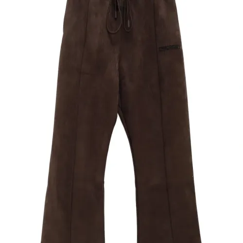 коричневый цвет, застёжка на шнурке, принт с логотипом, расклёшенные брючины