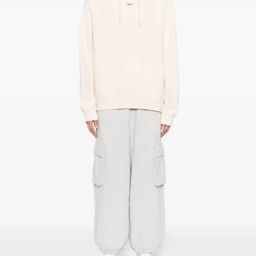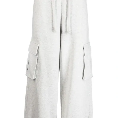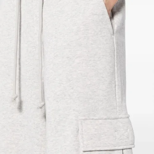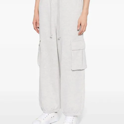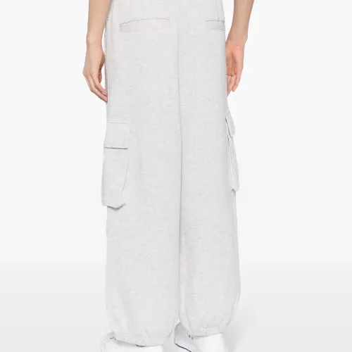 Светло-серый, смесовый хлопок, нашивка с логотипом сзади, кулиска на талии, два прорезных кармана по бокам, два накладных кармана по бокам, два кармана с листочкой сзади и эластичные манжеты.