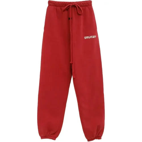 красный, с завязками, с логотипом, с манжетами в рубчик, с эластичным поясом и подолом