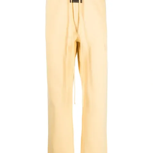 Банановый, смесовый хлопок, кулиска на талии, принт с логотипом, прямой крой и два прорезных кармана по бокам.