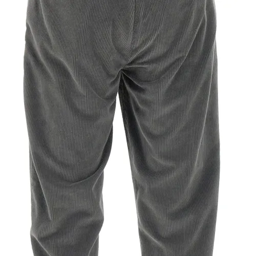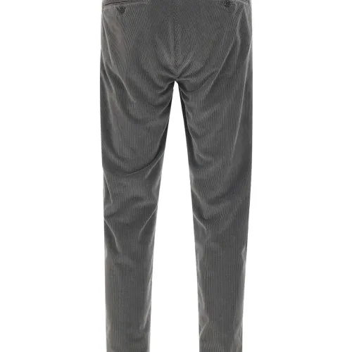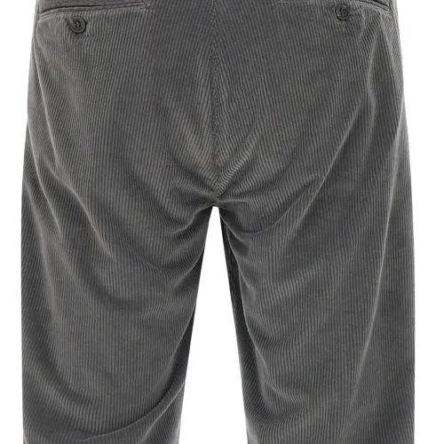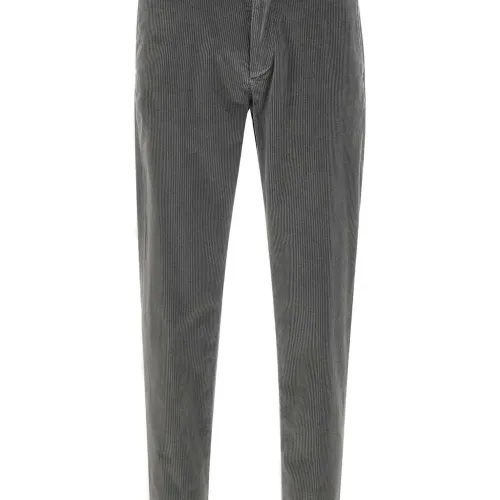 серый вельвет, фактура, боковые прорезные карманы, задние карманы, застежка на пуговице, манжеты по низу