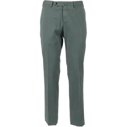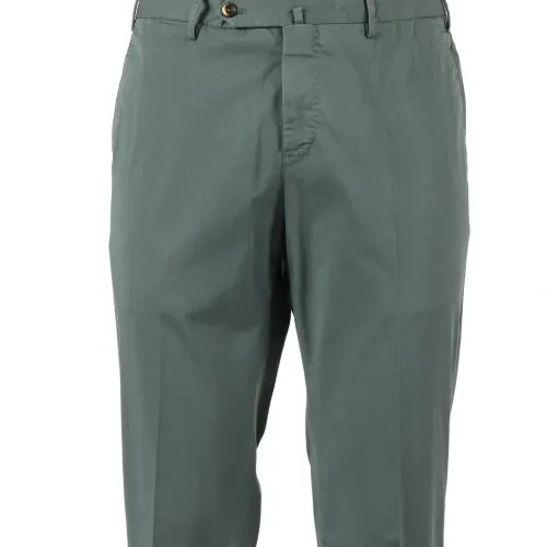 зелёные, зауженного кроя, с диагональными карманами, не обработанный край