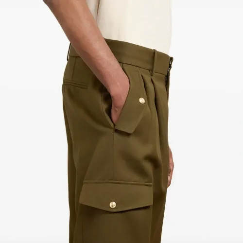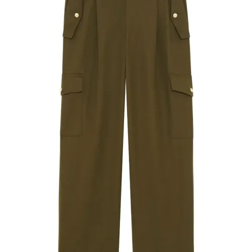 хаки ремень, накладные карманы, застежка на пуговицы, фурнитура золотистого оттенка, шлевки для ремня