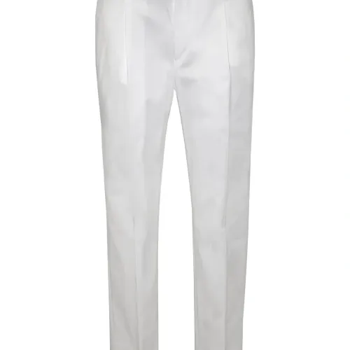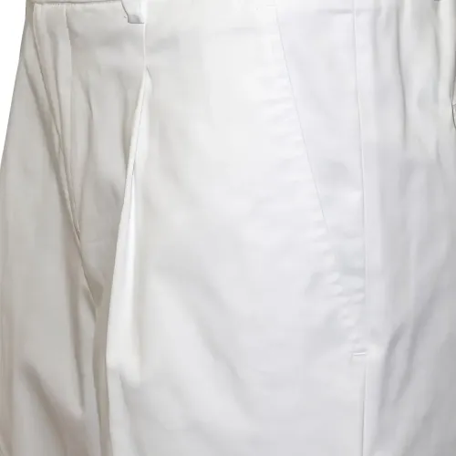 белый, шлевки для пояса, застежка на пуговицу, прорезной карман, складки спереди