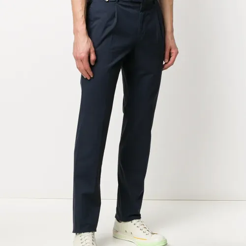 Брюки чинос прямого кроя от Pt01. Пояс с петлями для ремня, смещенная застежка на пуговицах спереди и задние карманы с листочкой.