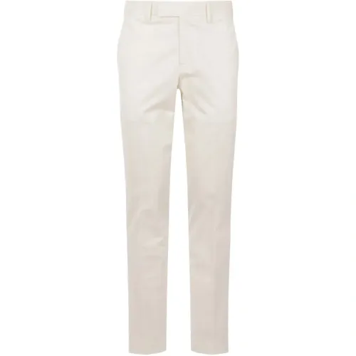 слоново-костного цвета брюки с шлевками для ремня, множеством карманов и центральной стрелкой