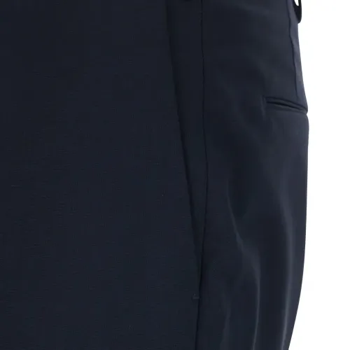 синие шлевки для ремня, застёжка на пуговицу, задние карманы