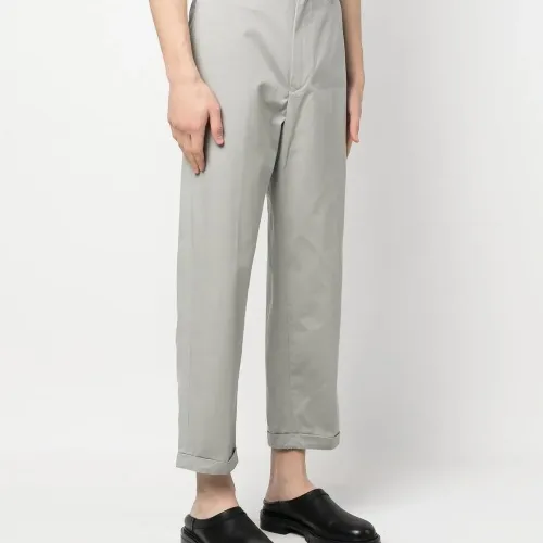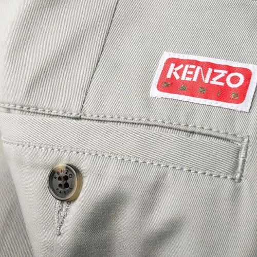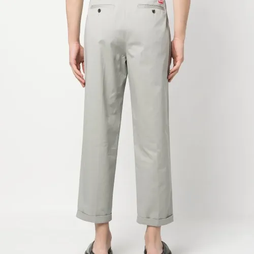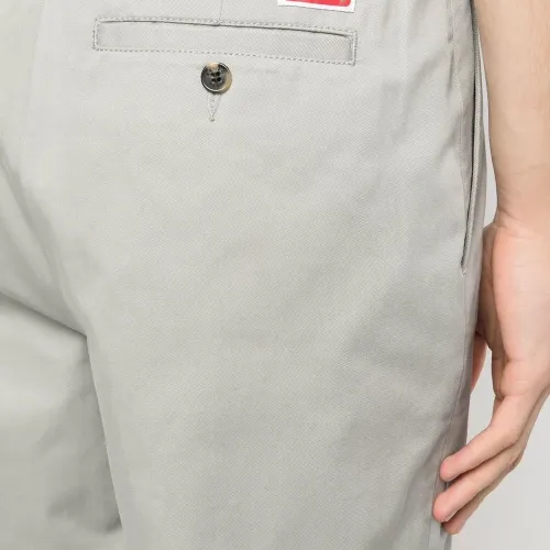 Нашивка с логотипом сзади, потайная застежка на молнии и пуговицах, два передних кармана, два прорезных кармана на пуговицах сзади, петли для ремня и укороченная длина.