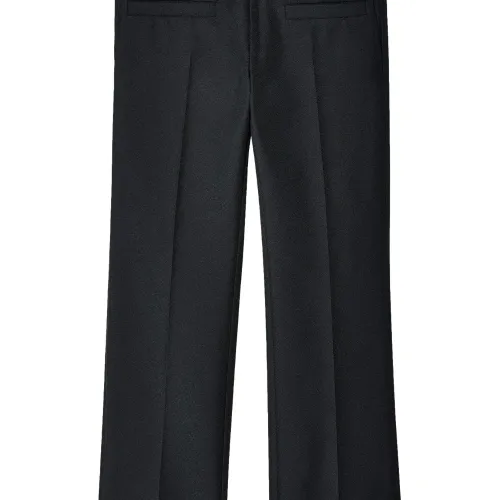 Черный, переработанный полиэстер, средняя посадка, прямой крой, строгий крой, маленькая подвеска с логотипом, потайная застежка спереди, петли для ремня, два передних кармана с листочкой и два кармана с листочкой сзади. Этот товар как минимум на 50% состоит из переработанных или повторно использованных материалов. Узнать больше о том, какие товары получают отметку «Ответственный выбор», можно из материала «Как мы оцениваем экологичность и этичность».