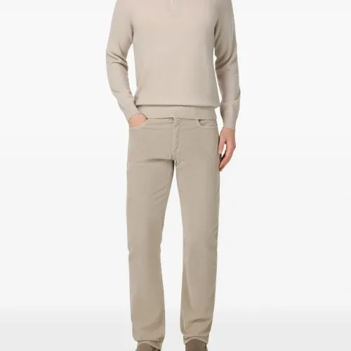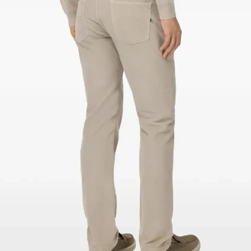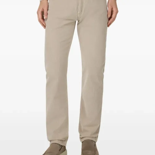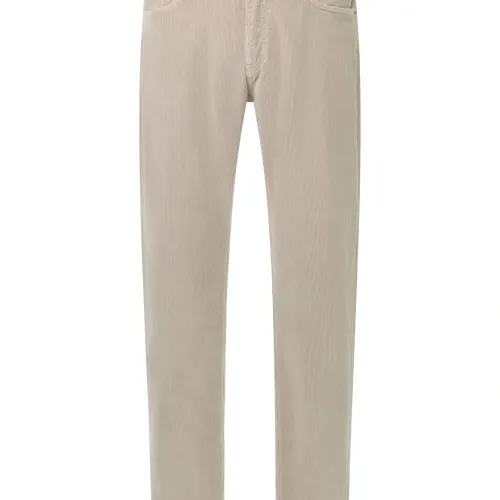 светло-бежевый вельвет, текстура, застежка на пуговицы, шлёвки для ремня, дизайн с пятью карманами