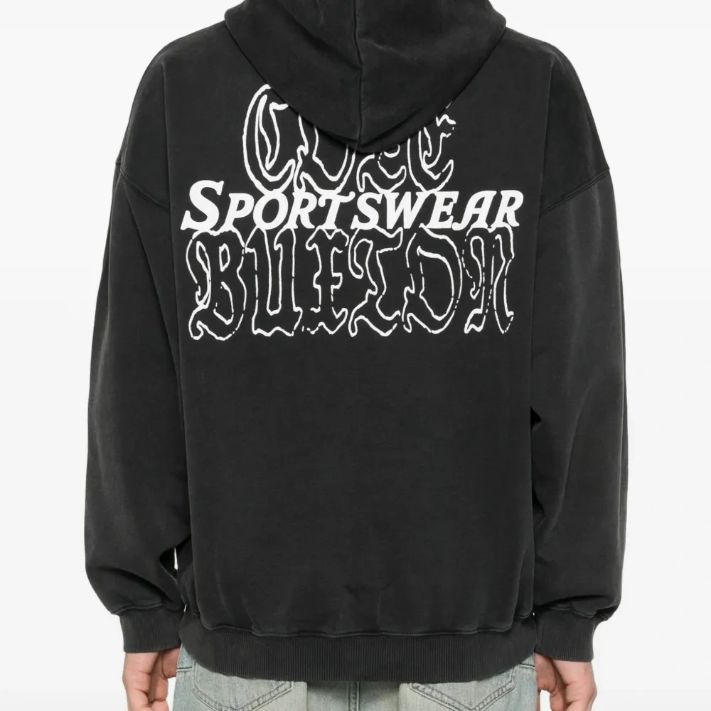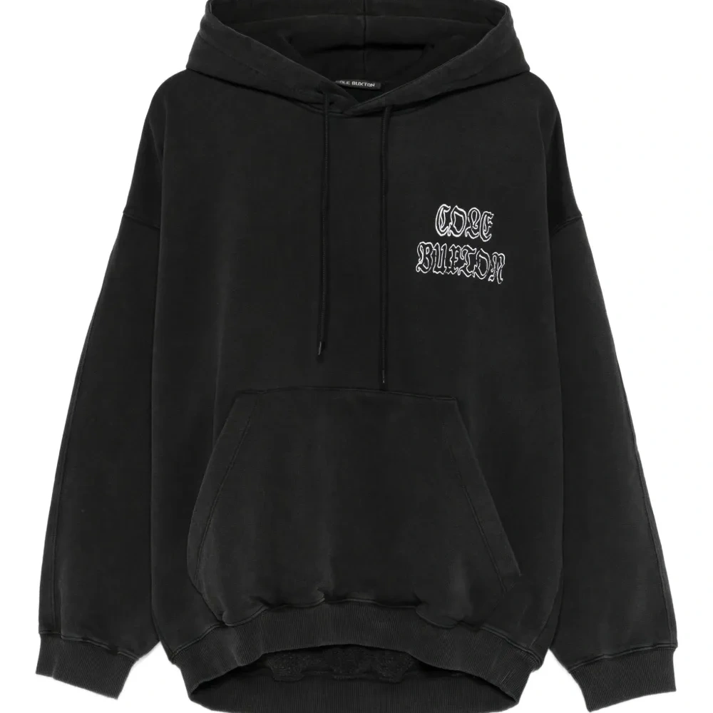 черная толстовка с капюшоном, логотипом, шнурком, карманом-кенгуру, длинными рукавами и эластичными манжетами