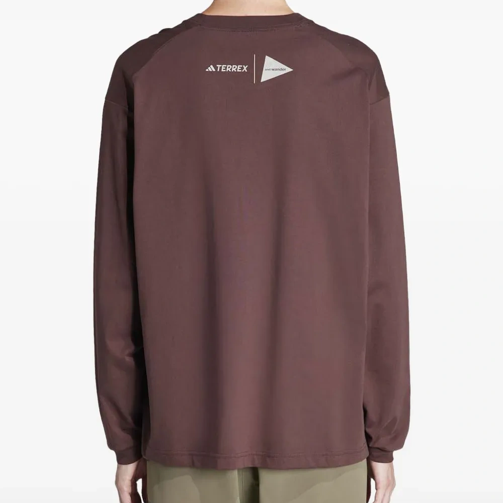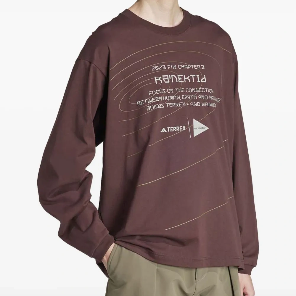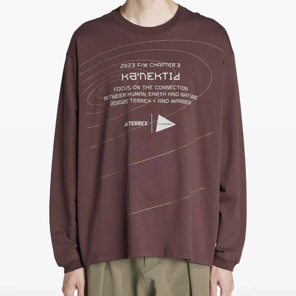 коричневый длинные рукава графический принт круглый вырез текстовый принт