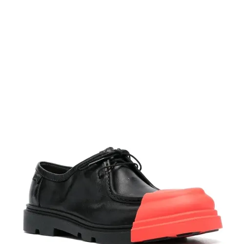 Черный, оранжевый, кожа, смесовый переработанный полиэстер, закругленный носок, шнуровка спереди, стелька с логотипом, низкий каблук и рифленая резиновая подошва. Кожа в составе этого товара сделана на фабрике, сертифицированной организациями Leather Working Group (LWG) или ICEC. Это гарантирует, что производитель минимизировал негативное влияние материала на окружающую среду. Узнать больше о том, какие товары получают отметку «Ответственный выбор», можно из материала «Как мы оцениваем экологичность и этичность».