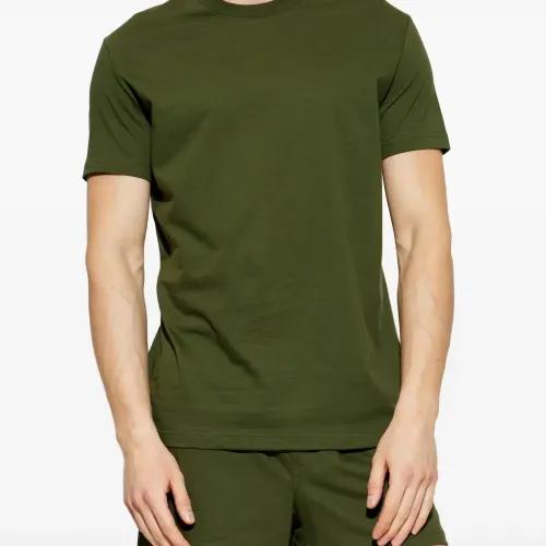 оливково-зеленая хлопковая футболка с круглым вырезом и короткими рукавами