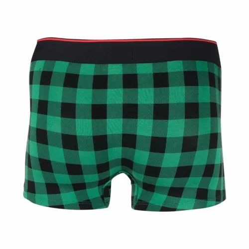 Клетчатый узор, пояс с логотипом, контрастная отделка и средняя посадка. Эту вещь можно примерить, но только поверх собственного белья.