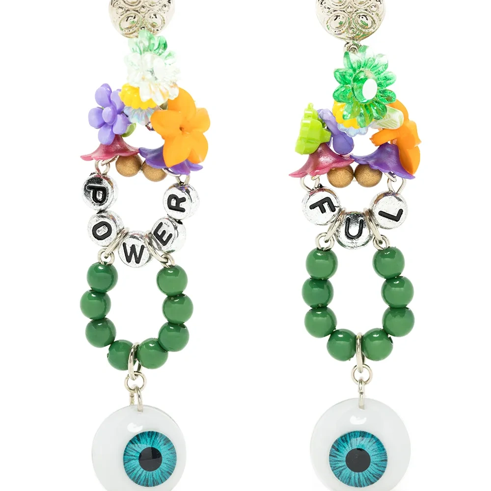 Застежка-бабочка, серьги-подвески, детали из бисера, цветочная деталь, подвеска и для проколотых ушей. В комплект входят две серьги.