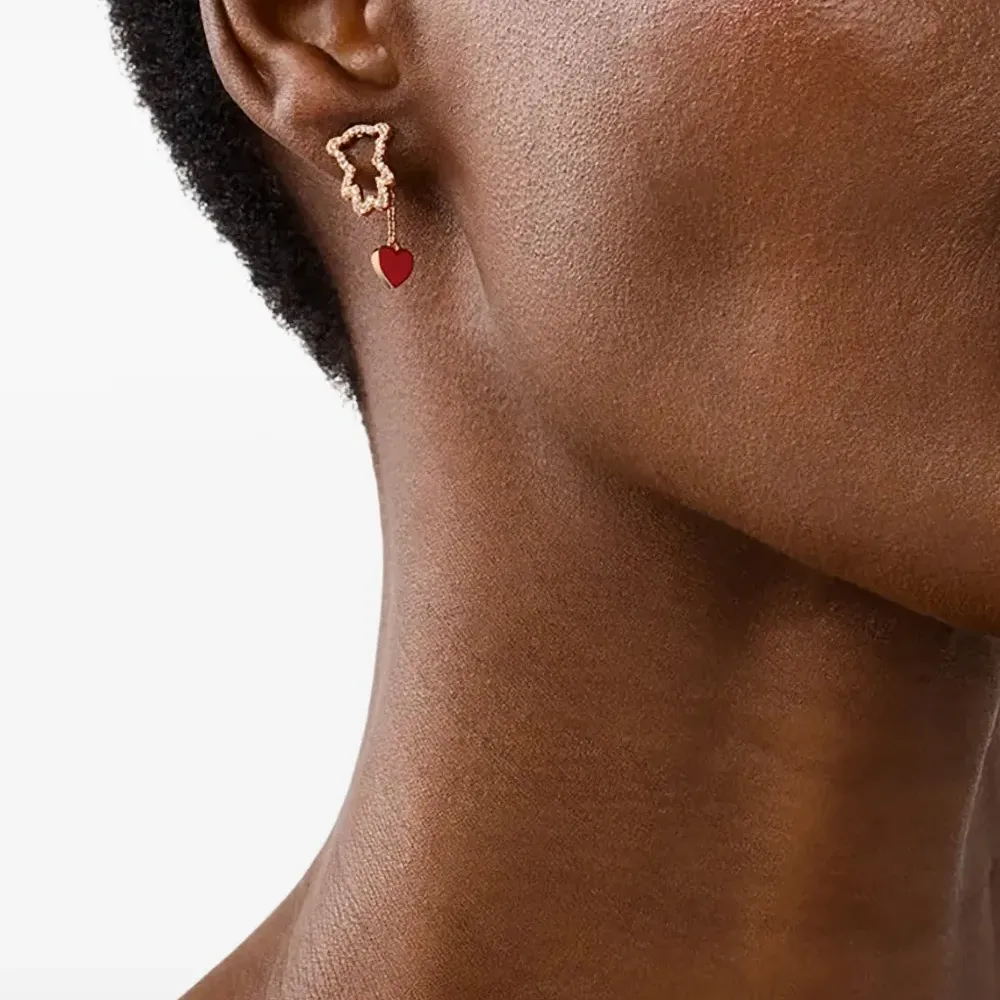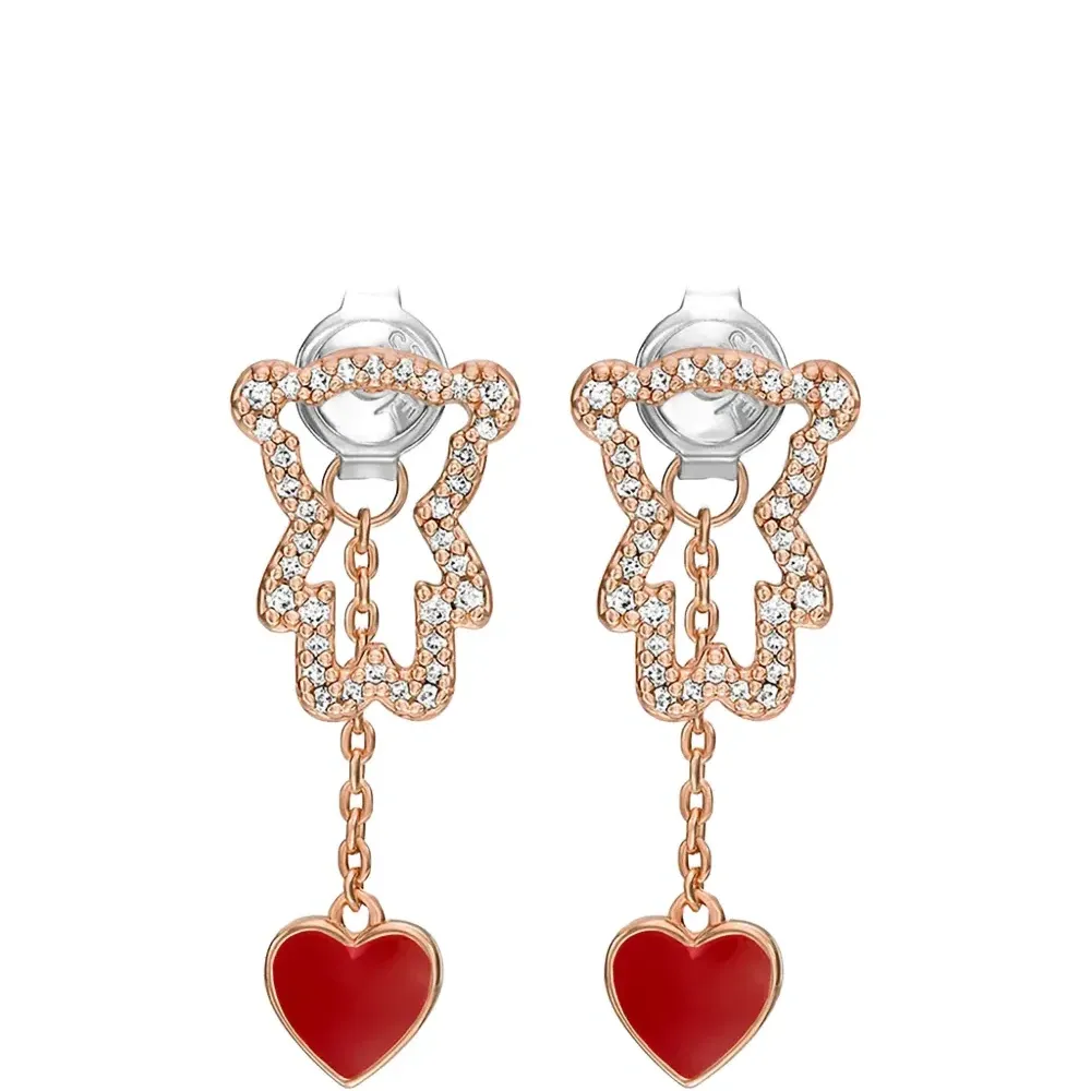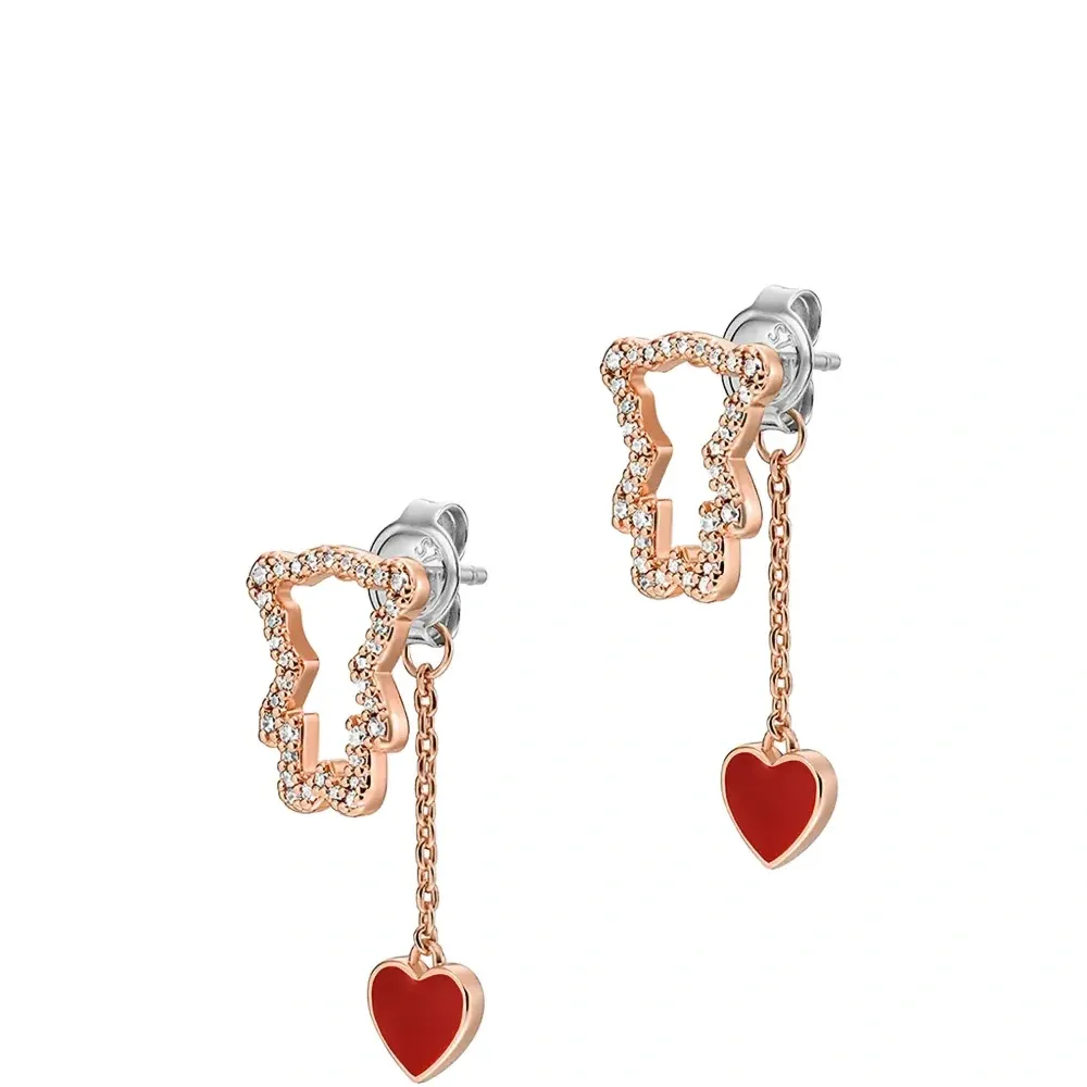подвеска в форме сердца из розового золота с украшением кристаллами, цепочкой и застежкой-гвоздиком