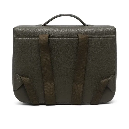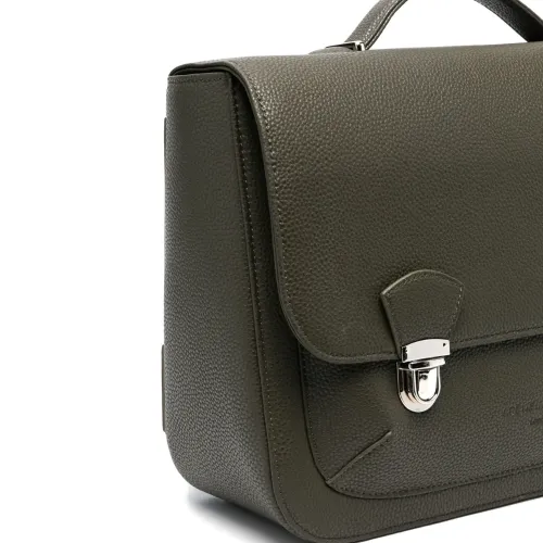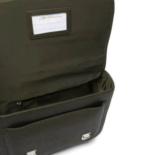 Хаки, искусственная кожа, тисненый логотип спереди, нашивка с логотипом внутри, застежка на зажиме, серебристая фурнитура, верхняя ручка, регулируемые лямки и основное отделение.