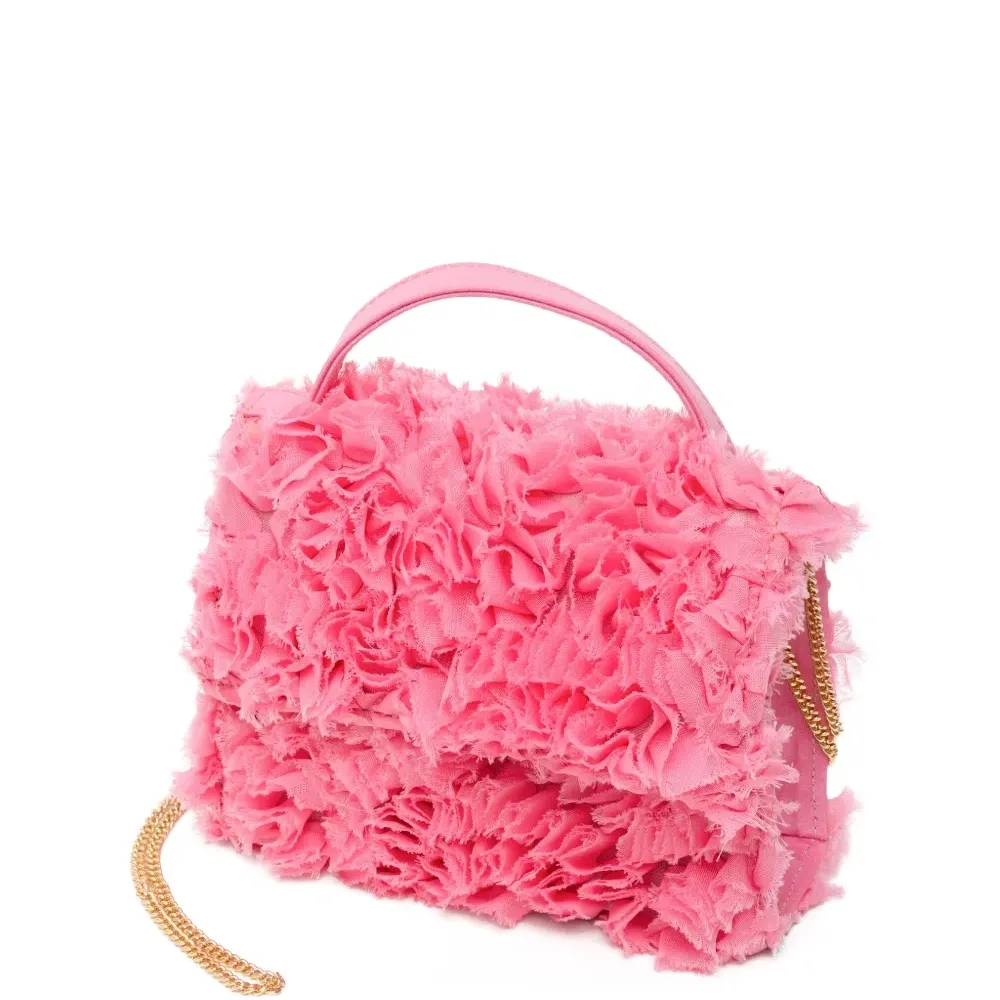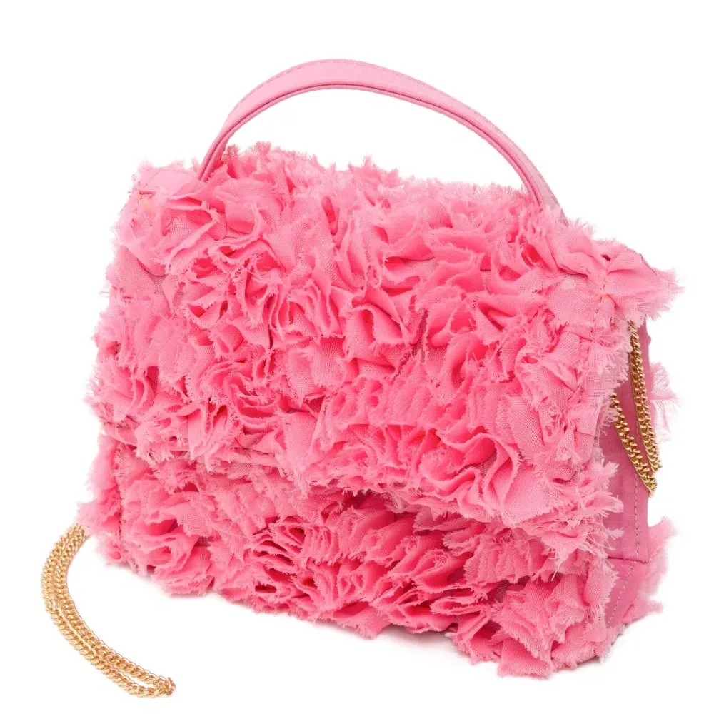 розовая текстурированная сумка с ручкой, рюшами и цепочкой