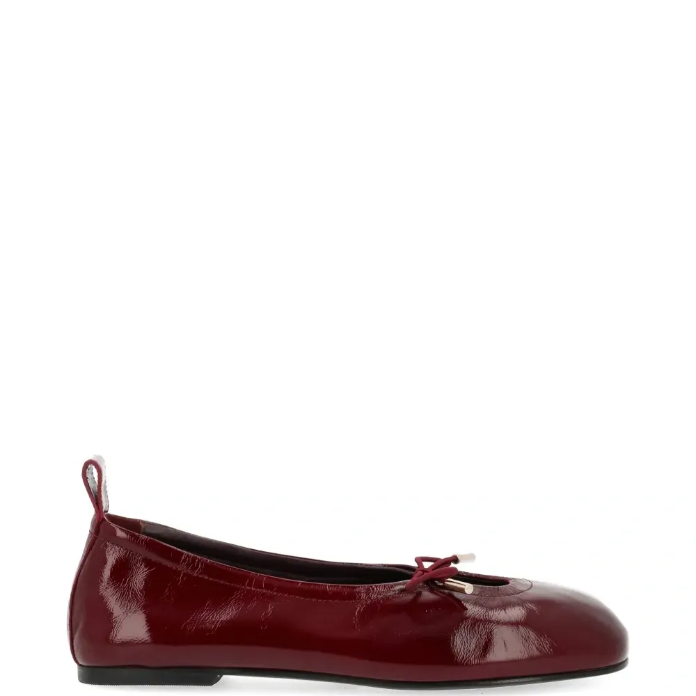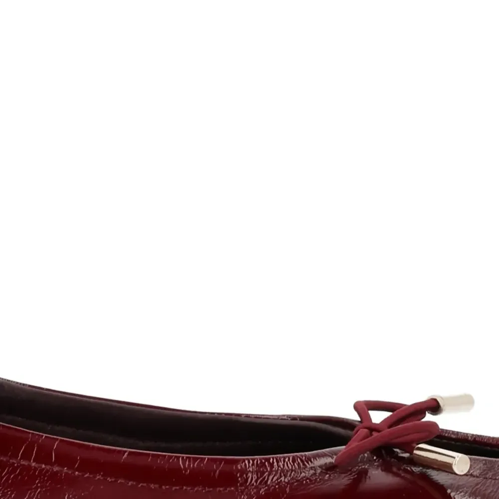 красные балетки с круглым носком, бантом, задней петлей и плоской подошвой
