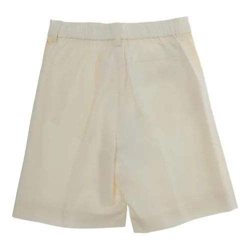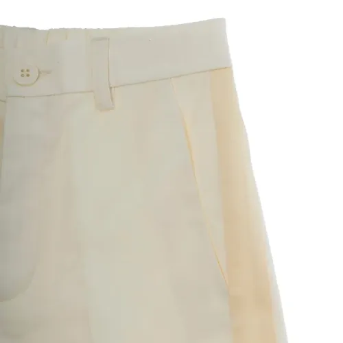бежевые боковые вставки, шлевки для ремня, застежка на пуговицу, логотип сзади, эластичный пояс
