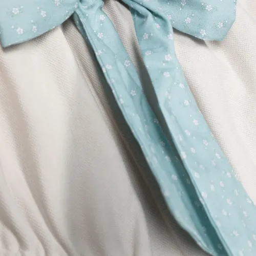 Светло-бежевый, синий, хлопок, бант, эластичный пояс и эластичный подол.