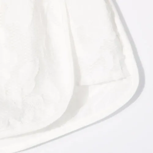 Вставки из цветочного кружева, модель на запах, кулиска на талии и закругленный подол. Цвет: белый. . Узнать больше о том, какие товары получают отметку «Ответственный выбор», можно из материала «Как мы оцениваем экологичность и этичность».