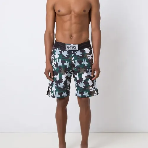 Зеленые плавательные шорты с камуфляжным принтом от Amir Slama. Пояс, застежка на липучке, разрезы по бокам.