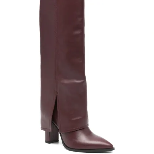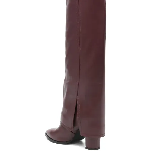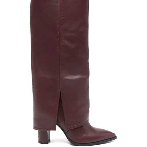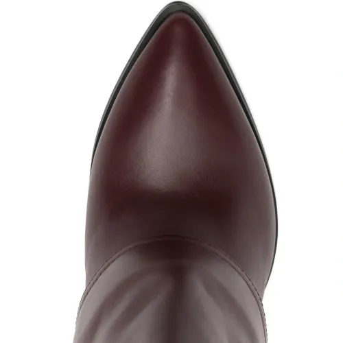 темно-красные туфли с заостренным носком, на устойчивом каблуке, с разрезом и отделкой швами