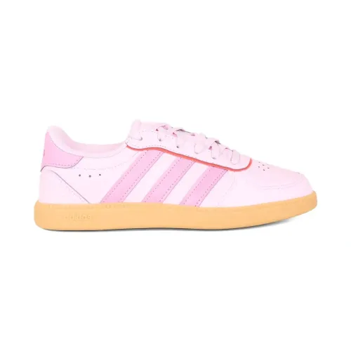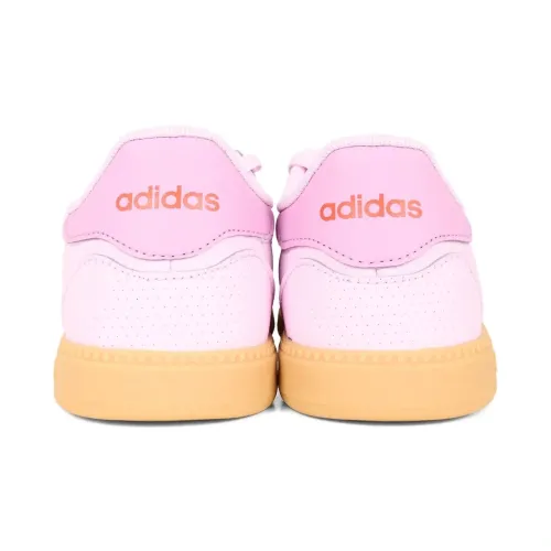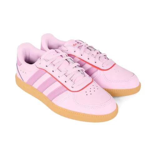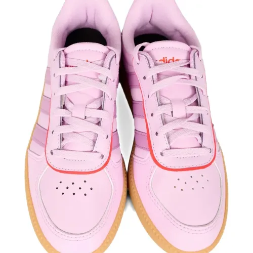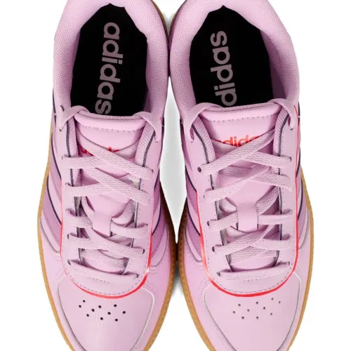 дизайн в лиловую полоску, шнуровка, перфорированные элементы, логотип на пятке